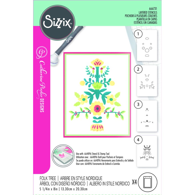 - Four Piece Set Get creative with different shades and textures on 4 layers of this stencil to create a detailed project with perfect precision.