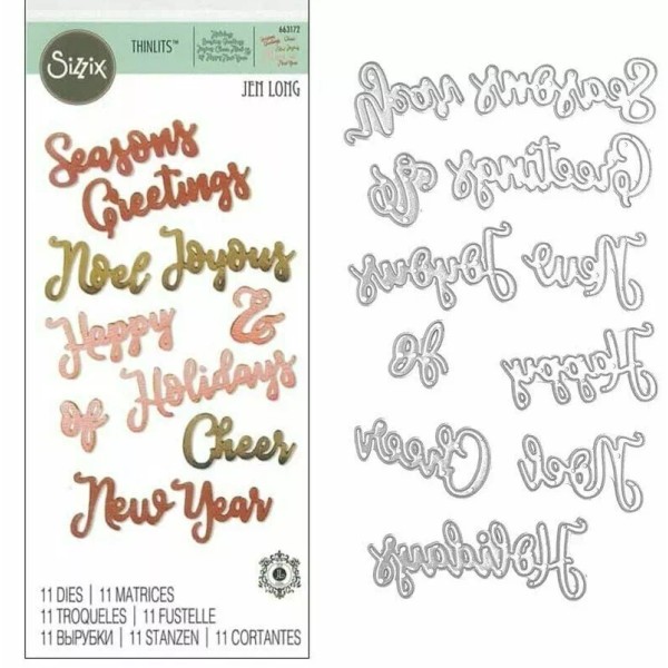 Sizzix Christmas Phrases #2 Sizzix Thinlits Thin Metal Die Set 663172 NEW!