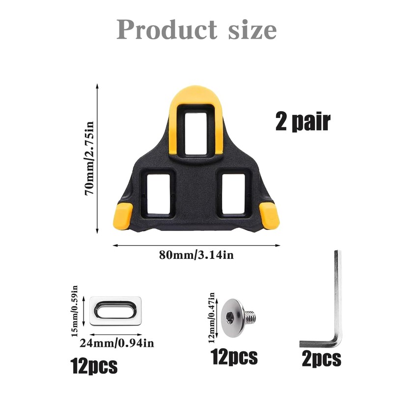 - Box contents: you will receive 2 pairs of bicycle shoes cleats with 12 washers, 12 screws, 2 Allen keys, high-quality parts ensure easy installation in just a few minutes.