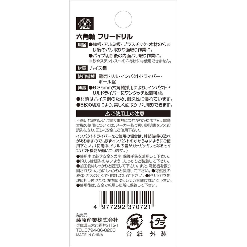 SK11 Hexagonal Shaft Free Drill for Ironworking, 0.5 inches (12 mm)