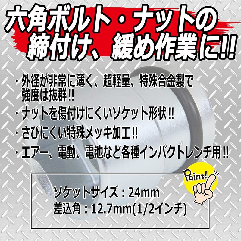 - Socket Size: 0.9 inches (24 mm)
