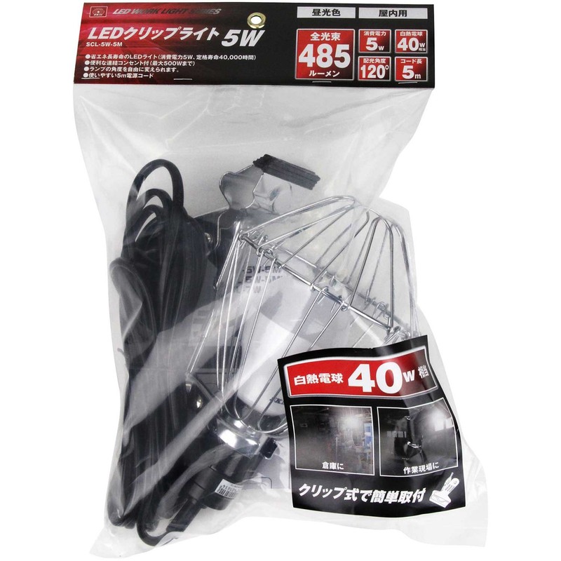 SK11 SCL-5W-5M LED Clip Light, Daylight Color, Indoor Use, 5W