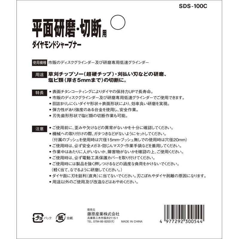- Uses: For grinding grass cutting chip saw (carbide chips) and cutting blade and PVC materials (up to 0.2 inch (5 mm) thick)