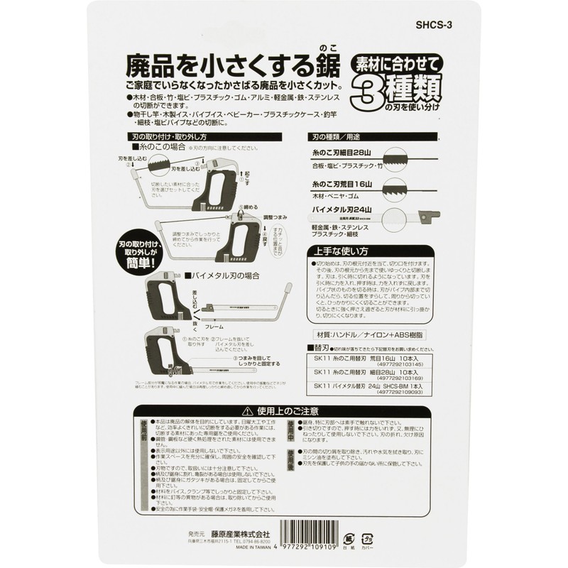 - Bimetal Blade: 24 threads: Cutting light metal, iron, stainless steel, and plastic