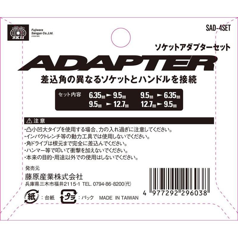 SK11 Socket Adapter Set, 4 pcs, Connecting Sockets and Handles with Different Insertion Angles, SSA-4S