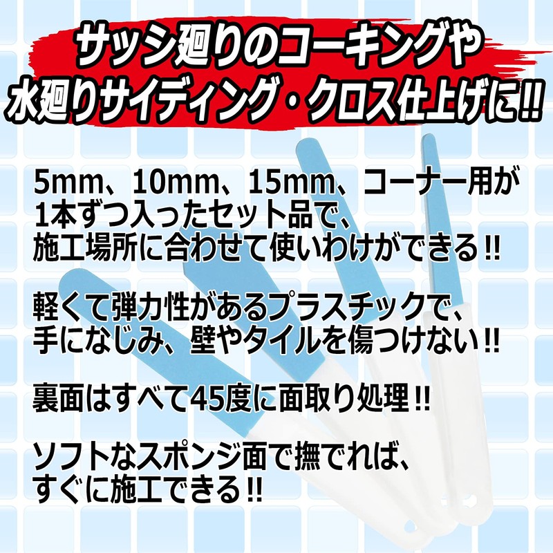 SK11 Soft Caulking Spatula Set, Set of 4, 0.2, 0.4, 0.4, 0.6 inches (5, 10, 15 mm), Corner