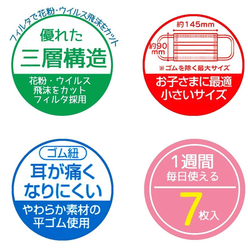 - 素材・材質:表地=ポリエステル(スパンレース不織布)・ポリプロピレン、フィルター=ポリエチレン(メルトブロー不織布)