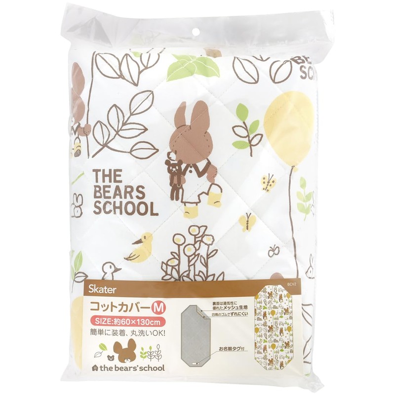 Skater BCV2-A Cot Cover, M, 23.6 x 51.2 inches (60 x 130 cm), Nursery School, Napping, Cot Cover, Bed Sheet, Bear School