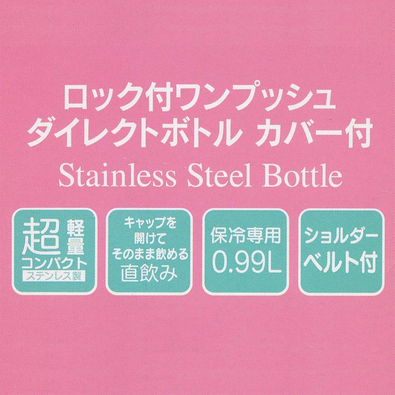 - Materials: Inner bottle/lip: Stainless steel; Body: Stainless steel (acrylic resin coating); Cap: ABS resin; Lid: Polypropylene; Gasket: Silicone rubber; Bottom Plate: Elastomer; Bottle Cover: Cotton, polyester; Belt: Poropylene; Piping: Polyester