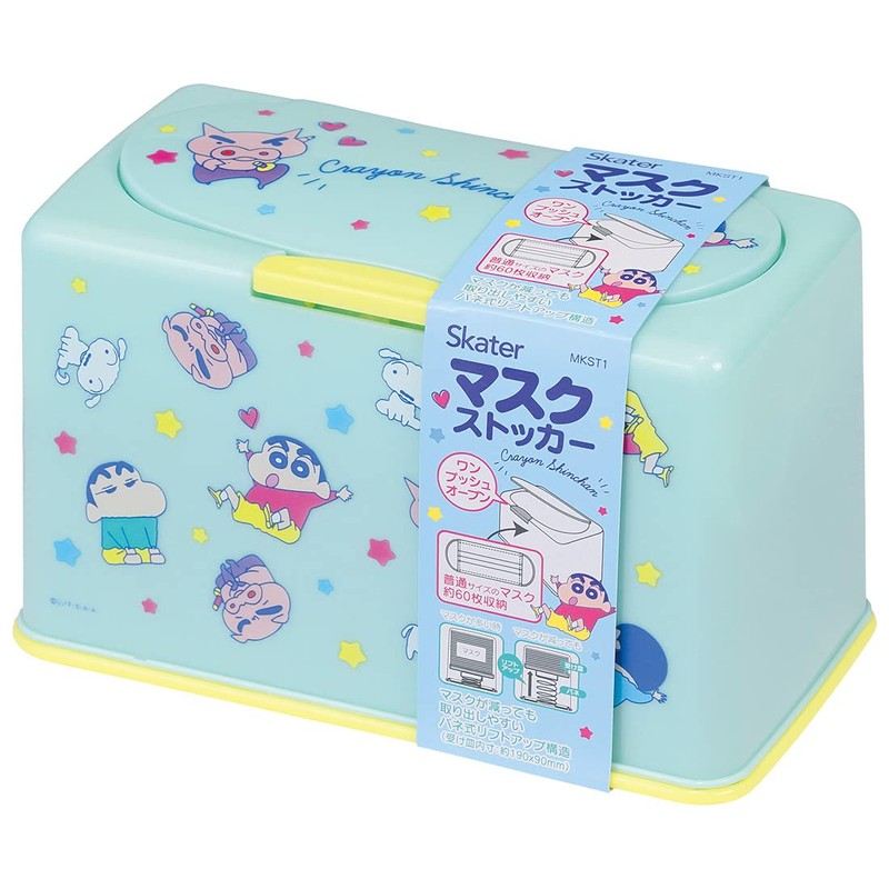 Skater MKST1-A Mask Stocker, Spring Lifted Type, Holds Approx. 60 Masks, Design: Crayon Shin-Chan