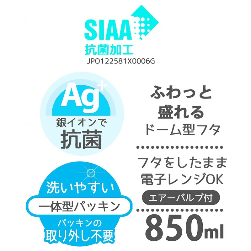 Skater PAS9AG-A Ag+ Silver Ion Lunch Box, Antibacterial, Fluffy, Packing, Integrated Air Valve Included, 1-Tier, 28.9 fl oz (850 ml), Nekotto Colorful