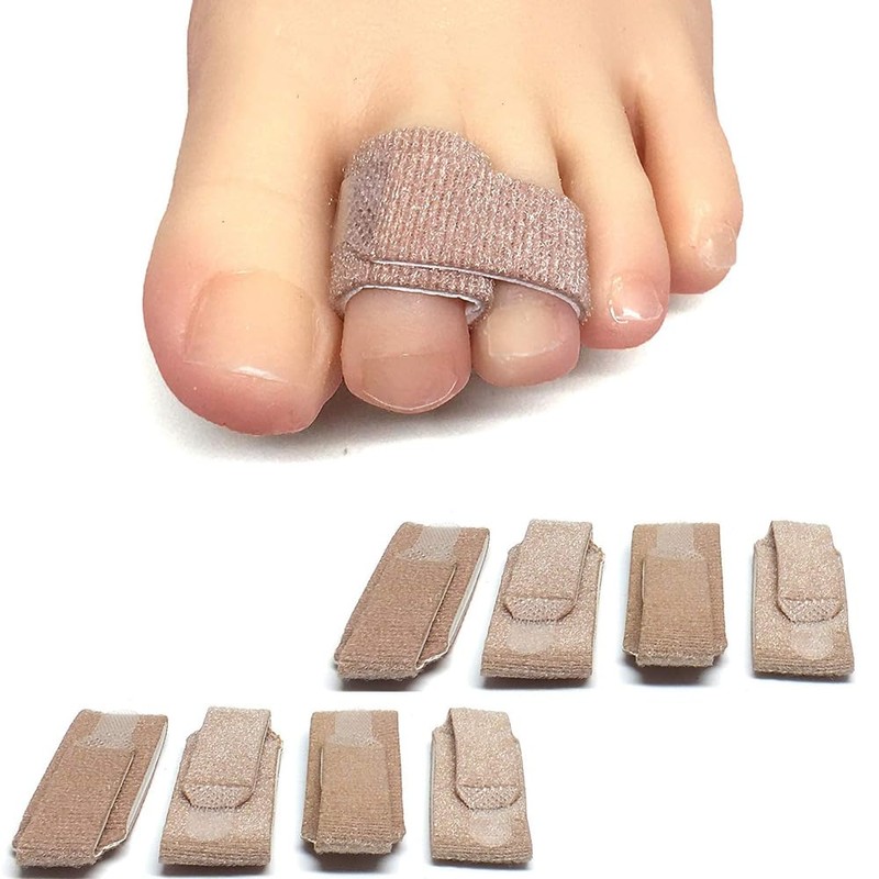 - Pack of 8: Includes 8 cushioned fabric toe wraps to protect and promote healing in broken toes and separate hammer toes. Non-slip fabric is easy to secure, clean, and reuse - making it superior to athletic tape. For use on small fractures that do not involve the big toe or the pinky toe.