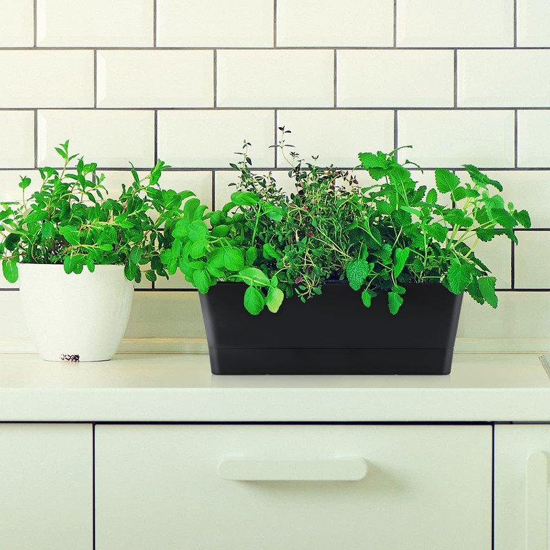 flow through soil and into the removable drain tray. It’s ideal for displaying or growing