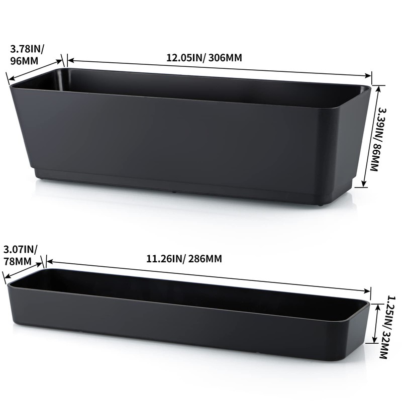Skelang 3 Pcs Rectangle Plant Pot, Succulent Planter Box with Drainage Holes, Planter Trough for Bay Window, Kitchen Windowsill, Shelf, Coffee Table (Black)