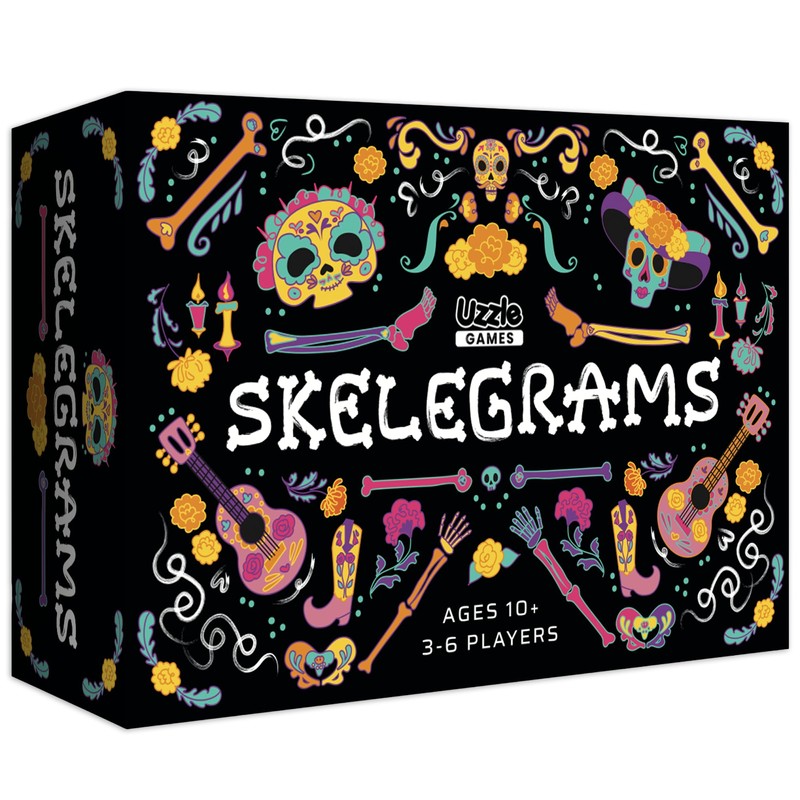 Skelegrams by Uzzle Games – Spell Words with Bone Pieces in This Fast, Cooperative Party Game for Families - Ages 8+, Spelling & Word Game for 3–6 Players