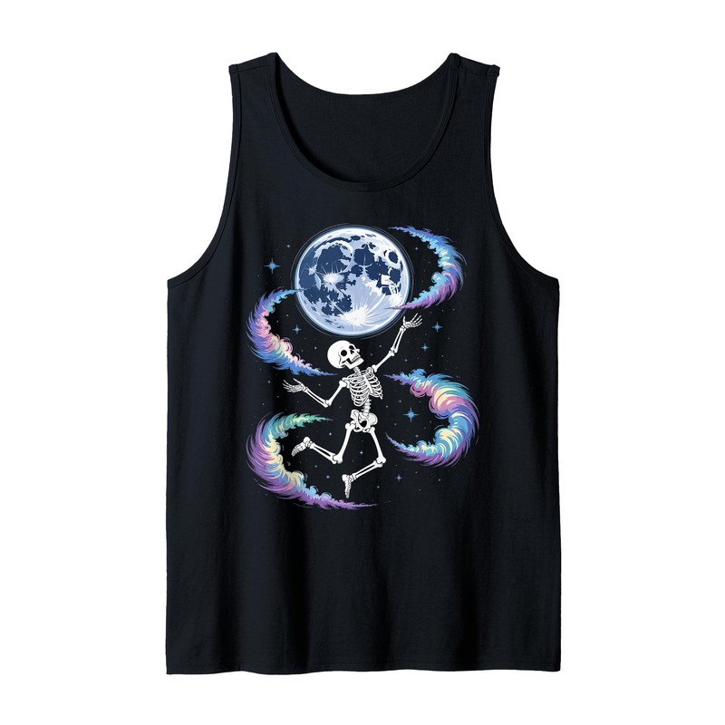 Skeleton Dancing Under The Moon Funny Spooky Tank Top