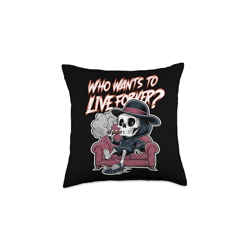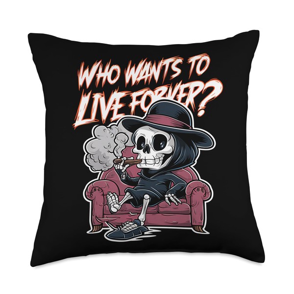 Skeleton Living Forever Funny Skeleton Afterlife Death Throw Pillow