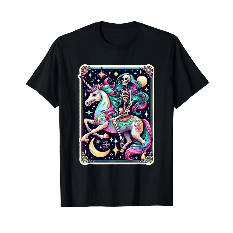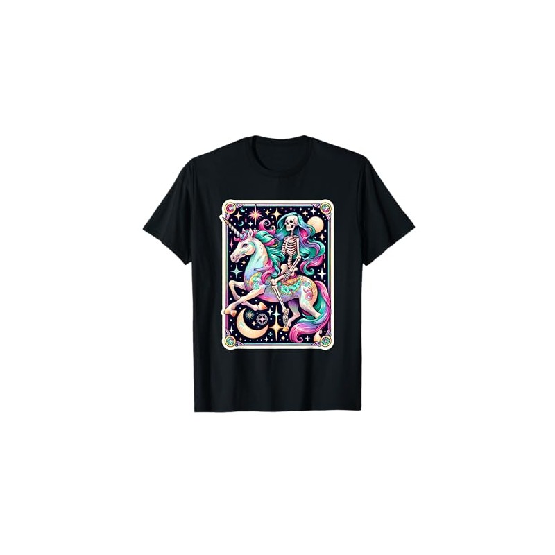 Skeleton Riding Unicorn Tarot Card Celestial Fantasy Art T-Shirt