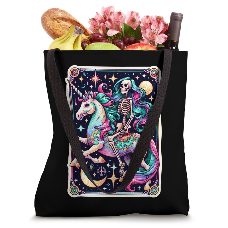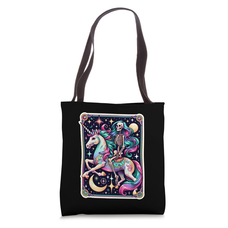 Skeleton Riding Unicorn Tarot Card Celestial Fantasy Art Tote Bag