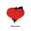 Sketchbook: Black Cats on Heart 6x9 - BLANK JOURNAL WITH NO LINES - Journal notebook with unlined pages for drawing and writing on blank paper