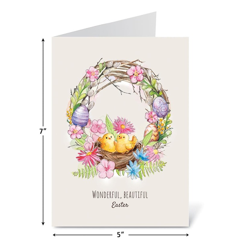 Easter cards are 5" x 7" and come with white envelopes. Set of 8, 4 designs. Each card is printed on high quality paper, and contains a unique message inside to send heartfelt message to your friends, family, boss, or coworkers. Every order comes with premium white envelopes so you can quickly write, pack, and mail your cards.