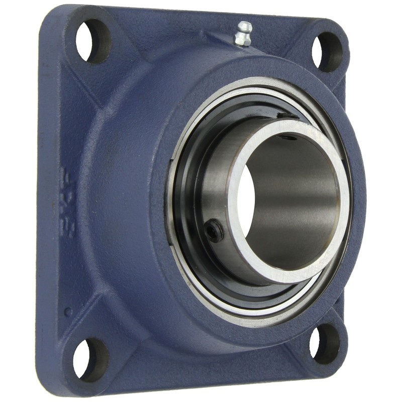 SKF FY 55 TF Ball Bearing Flange Unit, 4 Bolts, Setscrew Locking, Regreasable, Contact and Flinger Seal, Cast Iron, Metric, 55mm Bore, 130mm Bolt Hole Spacing Width