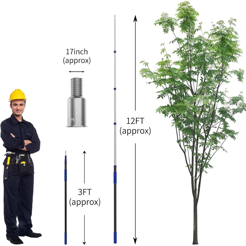 SKGPOLE 12FT Telescopic Extension Pole, 3-12FT Multi-Purpose Extension Pole with Universal Twist-on Metal Tip