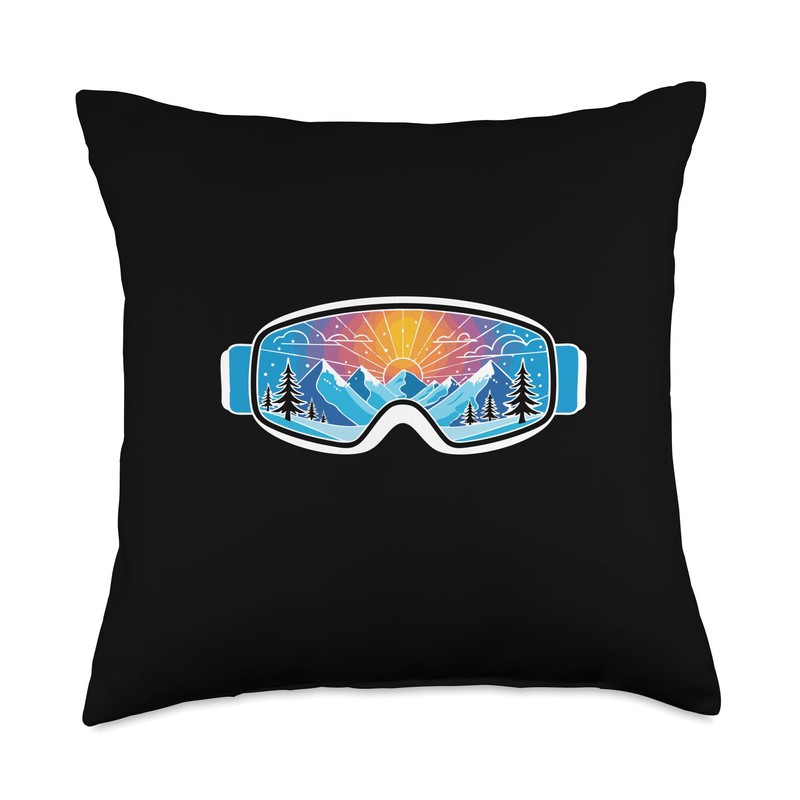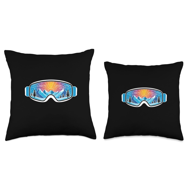 Ski Goggles Art Nature Mountains Minimalist Skiing Throw Pillow