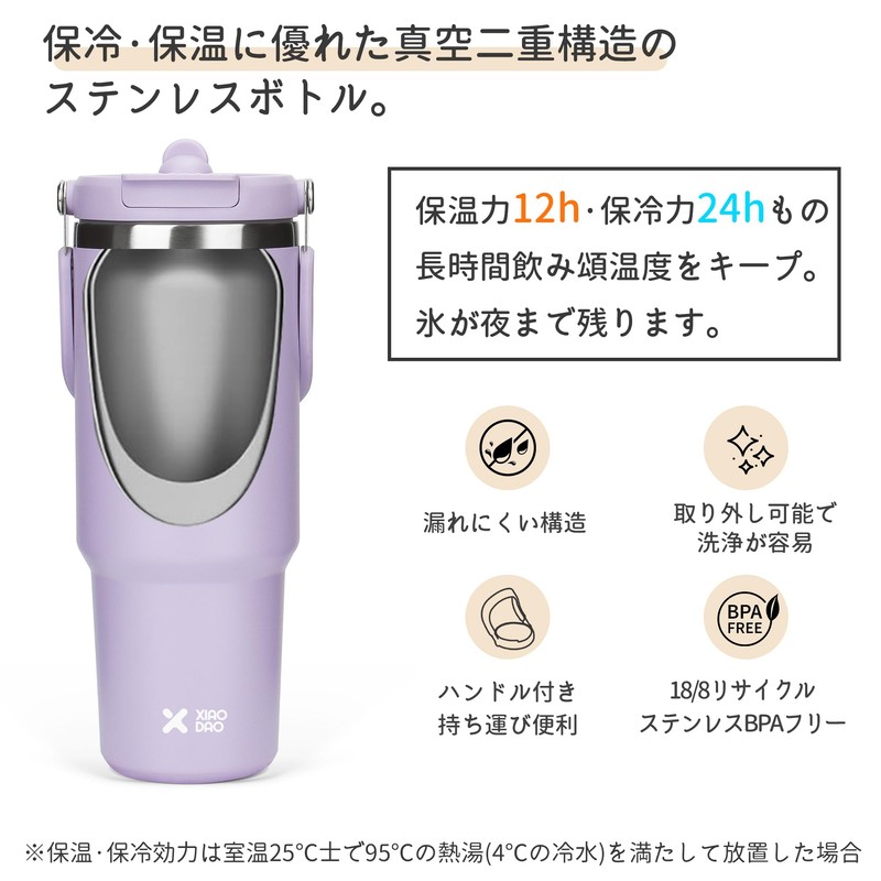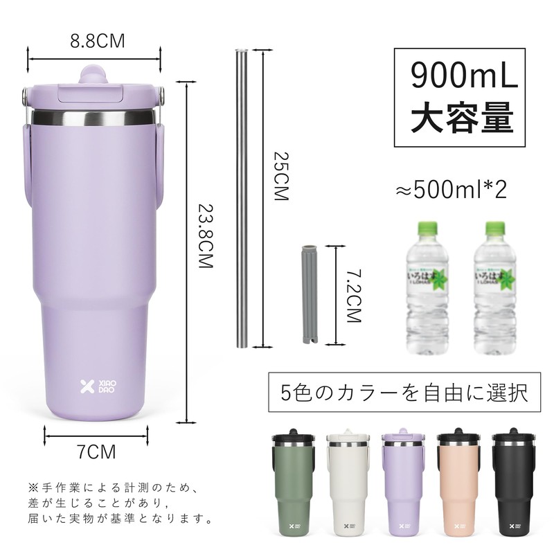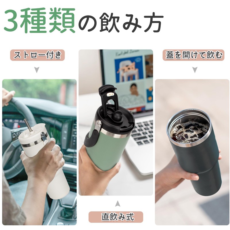 SKIASE Tumbler with Straw, 30.5 fl oz (900 ml), Large Capacity, Water Bottle, Vacuum Insulated, Hot or Cold Insulated, Stainless Steel Bottle, Wide Mouth, Direct Drinking, Lid Included, Outdoors,