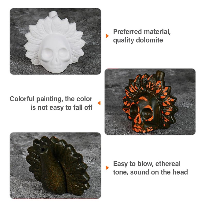 3/Die Aztekische Todespfeife besteht aus hochwertiger Keramik mit glatter Oberfläche, ist robust und langlebig und behält auch im Laufe der Zeit ihren einzigartigen Klang und ihre Schönheit.