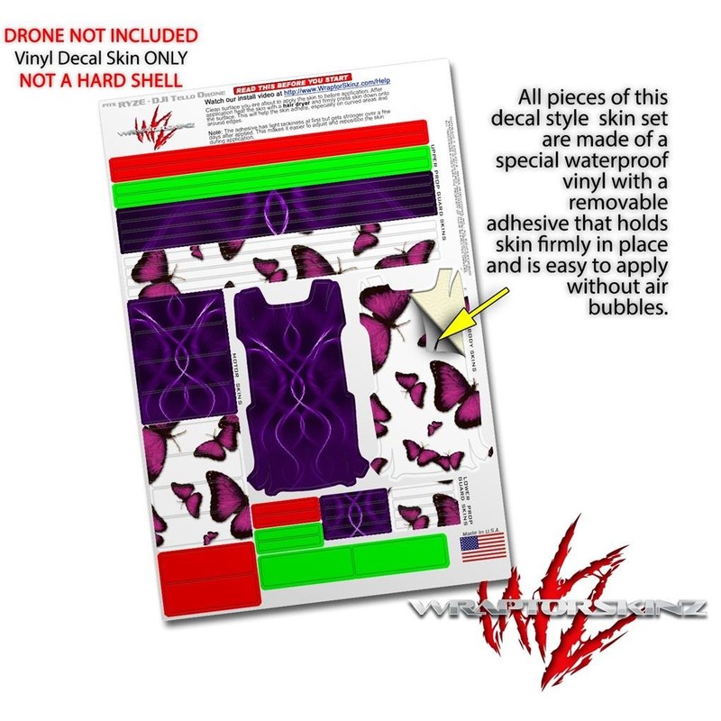 WraptoSkinz skin wraps are printed using superb photo quality designs and vibrant colors printed with special fade resistant inks that last even in direct sun for years. WraptorSkinz are a composite of two layers of commercial grade materials. The bottom layer is a soft, flexible vinyl with a special removable adhesive that is easily positioned, applied without air bubbles. Next we print the bottom layer with UV protected, fade resistant inks that deliver superb photo quality designs in vibrant colors. Finally we bond a professional grade laminate over the entire skin adding a glossy protective finish. This product is not affiliated with or endorsed by the Ryze or DJI brand.