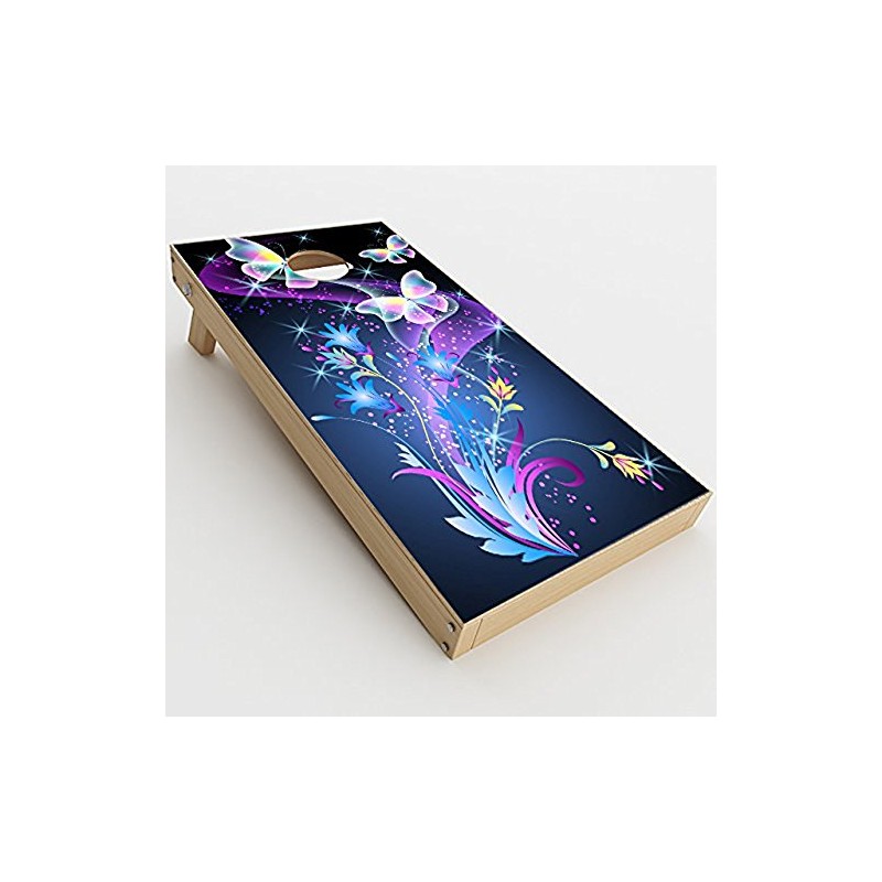 Skin Decals Vinyl Wrap for Cornhole Game Board Bag Toss (2xpcs.) / glowing butterflies in flight