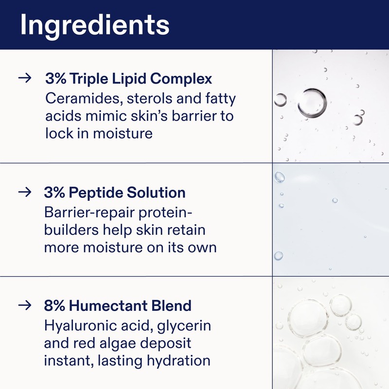 - POWERFUL INGREDIENTS: it is powered by active ingredients such as Hydrating Triple-Lipid Complex which are Skin similar lipid fillers that help restore ceramide and fatty acid levels. Firming Nutri-peptide Blend which are amino acids that support the skin barrier, and Plumping Seaweed Hyaluronate Blend for deep hydration.