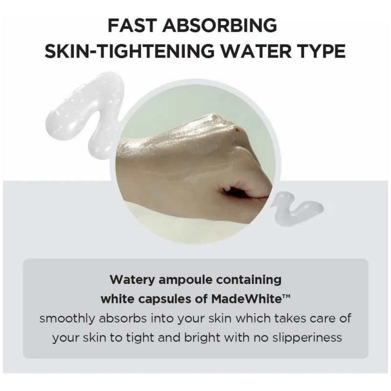 - La ampolla contiene pequeñas cápsulas blancas visibles suspendidas en la esencia. Estas cápsulas están formuladas para contener una concentración de los ingredientes iluminadores (como la Niacinamida y la Vitamina C).