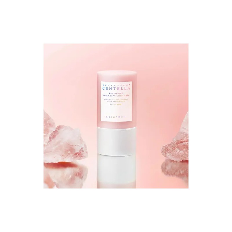 Mascarilla en barra Skin1004 Madagascar Centella Quick Clay Stick Mask, una solución vegana que combate los poros obstruidos y mantiene la hidratación de la piel.