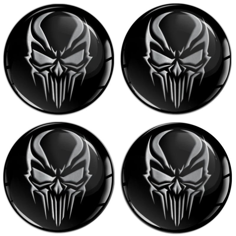 SkinoEu Set of 4 x 65 mm Sticker for Hub Caps Hub Caps Hub Caps Wheel Hub Cover Wheel Sticker Black Silver Skull A 5465