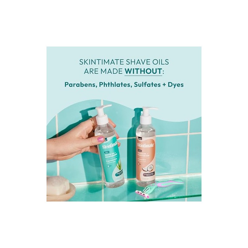 - 2-in-1 SHAVE PREP & POST-SHAVE MOISTURIZER C Skintimate shaving oil for women protects + softens skin, and can be used as an after shave oil for 24-hour moisturization