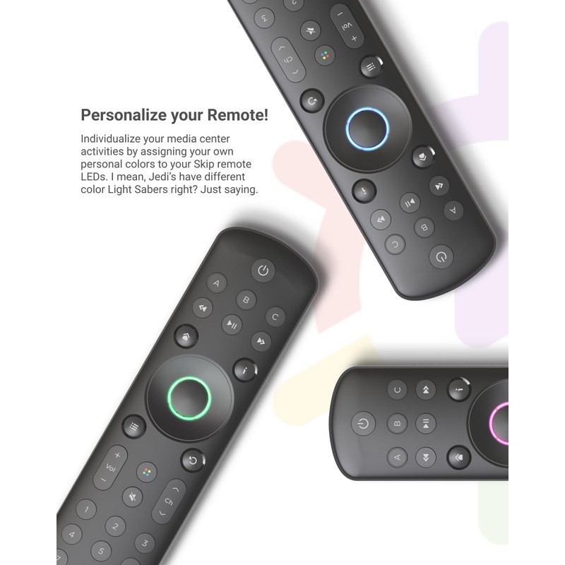 The Skip 1s Universal Remote Control makes controlling your entertainment center a breeze. With support for 3 different activities that can be activated with the click of a button, a universe of device combinations is at your fingertips. Leave the simplicity to us, and we'll leave the creativity to you.