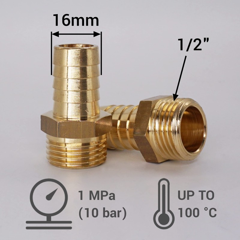• Package include:1PC External thread size: 1/2" barbed outer diameter: 16mm