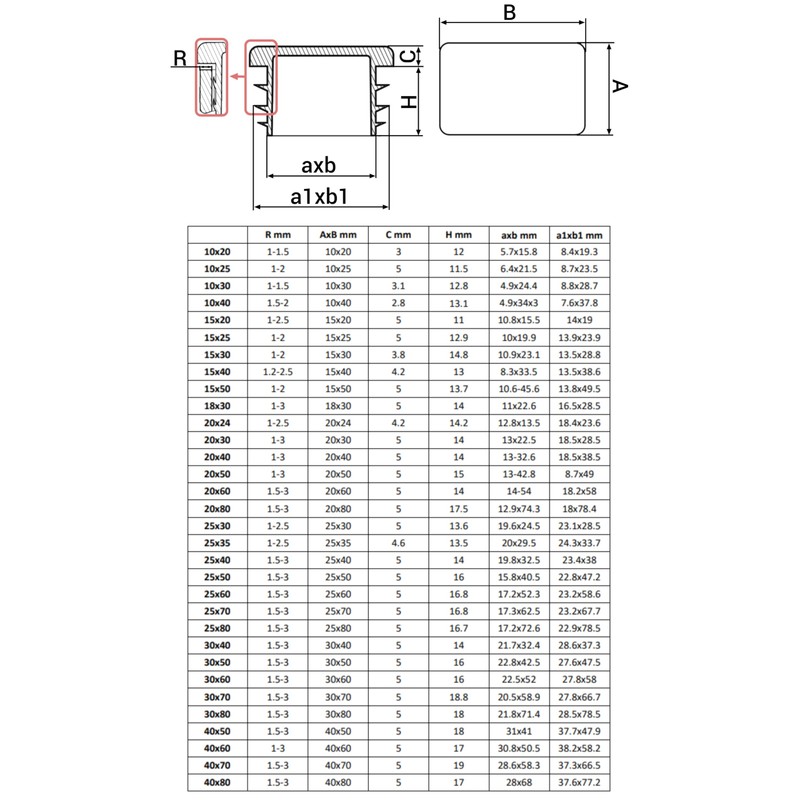 - These tube plugs are suitable for 20 x 30 mm rectangular tubes. Plastic plugs are sturdy, resistant to changing weather conditions and UV resistant. Used for plugging profiles (steel, aluminum, plastic, etc.).