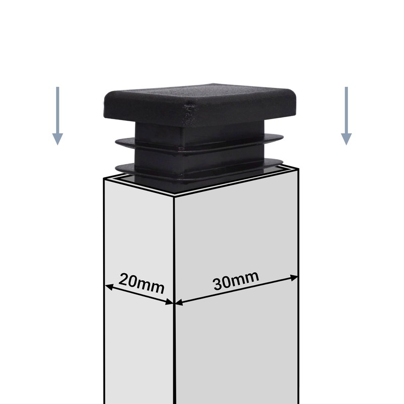 SKIR'CO (10 pcs) Rectangular Plastic Plugs 20 x 30 mm, Mat Tube End Caps, Rectangle Tube Inserts, Fence Post Plugs, Black RAL 9005
