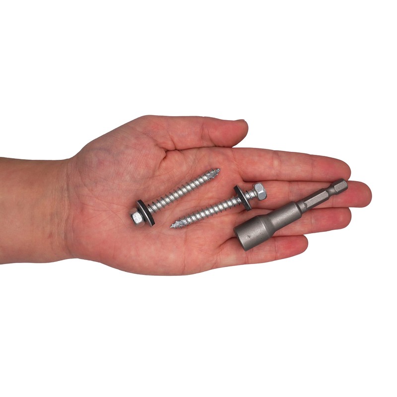 - ✔️ Hex head. Screws with cutting points. Zinc plated steel screws are reliable and long lasting. Included suitable magnetic hex nut driver bit helps to save your time by using it with cordless drill drivers;