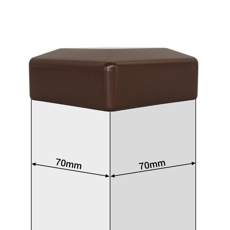 - Colour: brown (RAL 8028). These plastic caps are suitable for covering 70 x 70 mm fence posts.