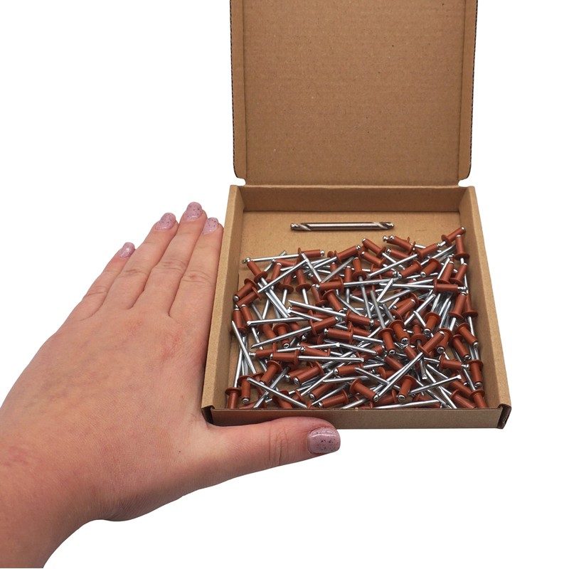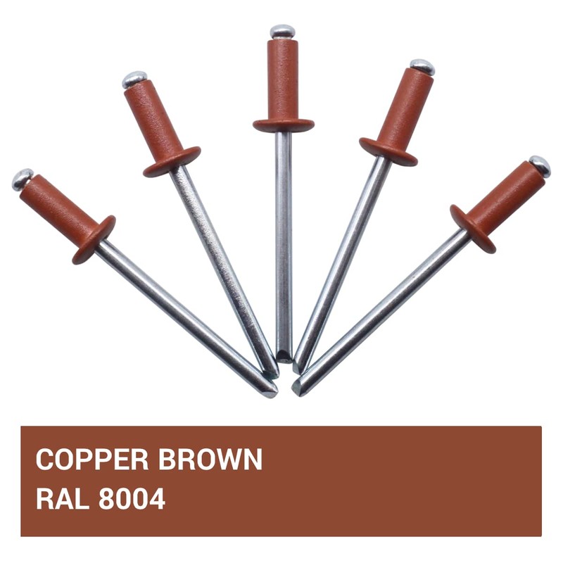 - ✔️ Package:100pcs blind rivets and a drill with 4.1mm diameter. Color: Copper Brown (RAL 8004) Rivet Size: 4.0 x 10mm;