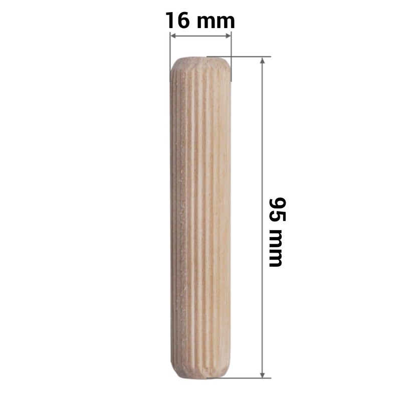 SKIR'CO (Pack of 25) Wooden Dowels 16x95mm Grooved Wood Dowels Fluted Pins for Furniture Grooved Dowels