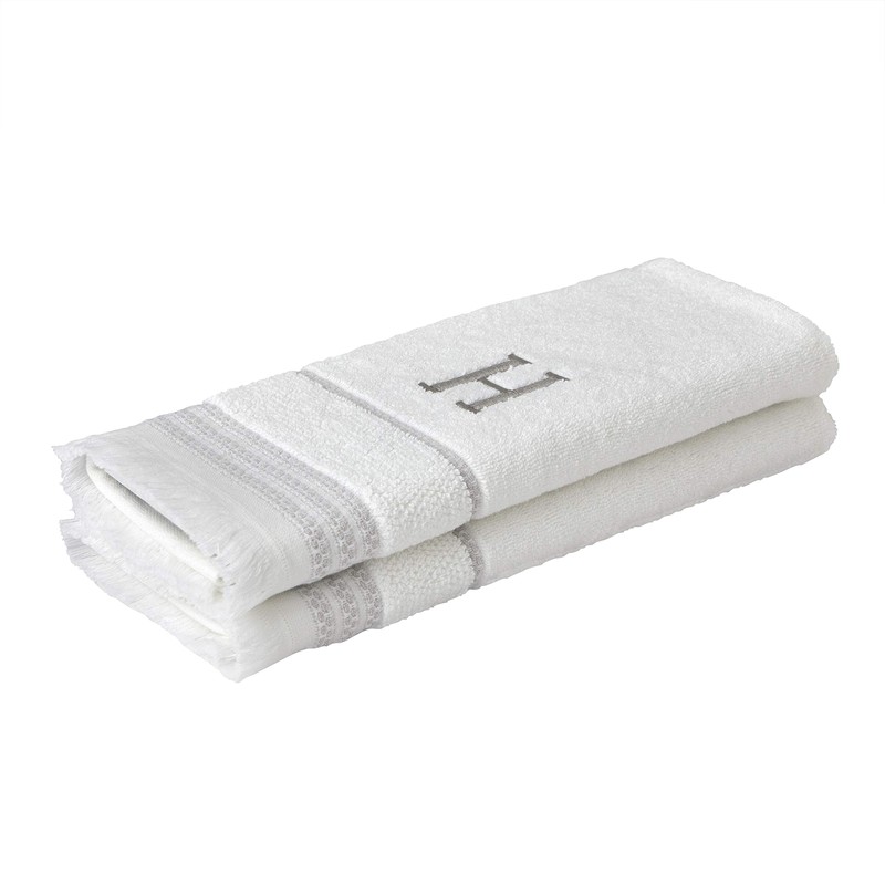 SKL Home Casual Monogram Hand Towel Set, H, 16x26, White 2 Pack