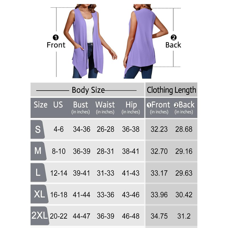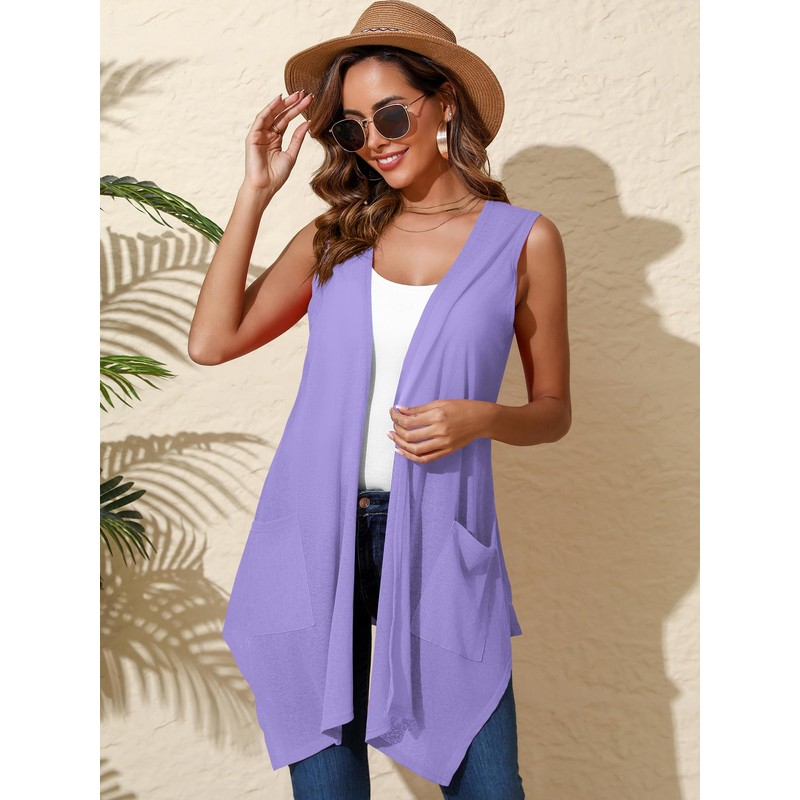Skrfez Lightweight Cardigan for Women Light Purple XX-Large Drape Shrugs Open Front Sleeveless Vest Lightweight Casual Soft Fashion Jacket Duster Cover Ups Spring Summer Shawl Kimono Wraps with Pocket