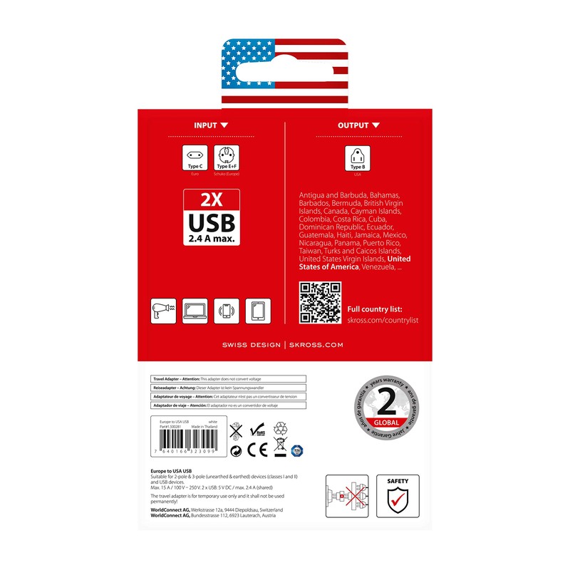 Skross 'Protective Contact' Country Plug Adaptor White One Size