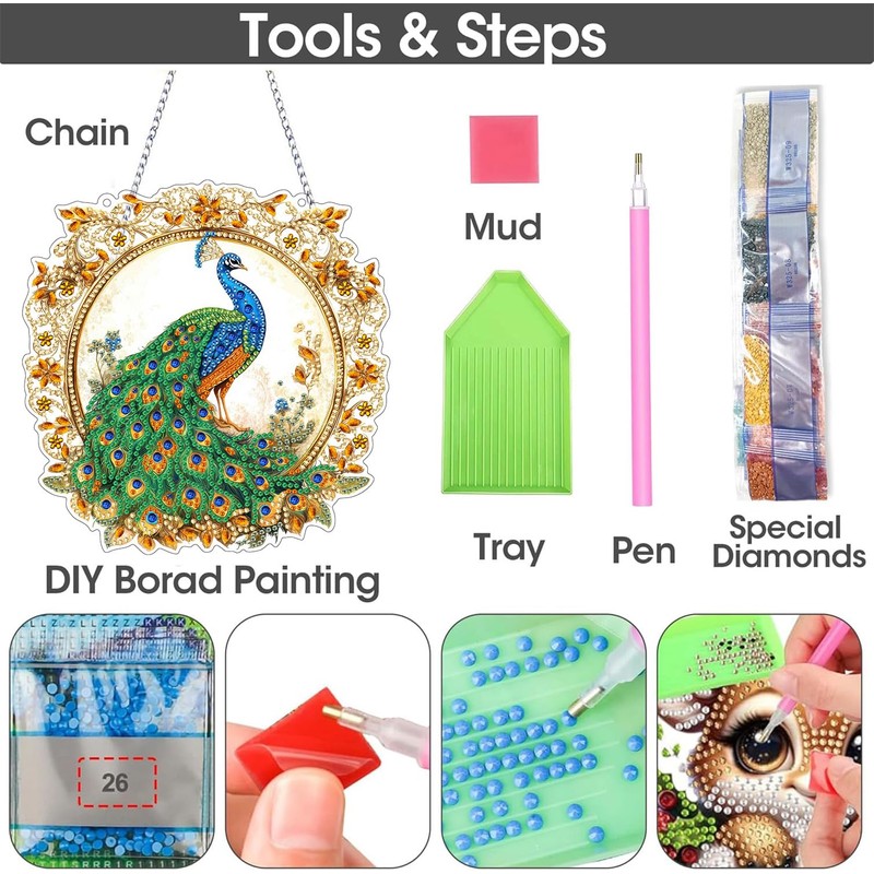 SKRYUIE Hanging Diamond Art Kits for Adults Peacock, DIY Window Pendant Diamond Painting Kit Sun Catcher, Special Shaped Crystal Acrylic Double Sided, Porch Outdoor Garden Ornaments 7.88 x 7.68 Inch