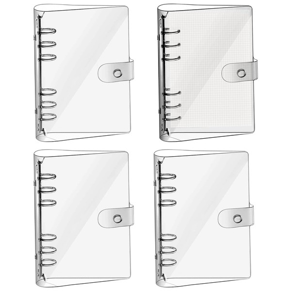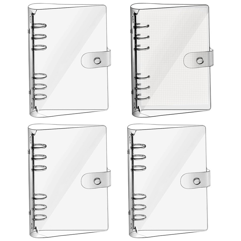 SKTMH 4Pack A5 Clear PVC Binder 6-Ring Notebook Binder Transparent Loose Leaf Binding Covers Refillable Notebook Round Ring Binder with Snap Button Closure Clear Notebook Cover for Notebooks Journal